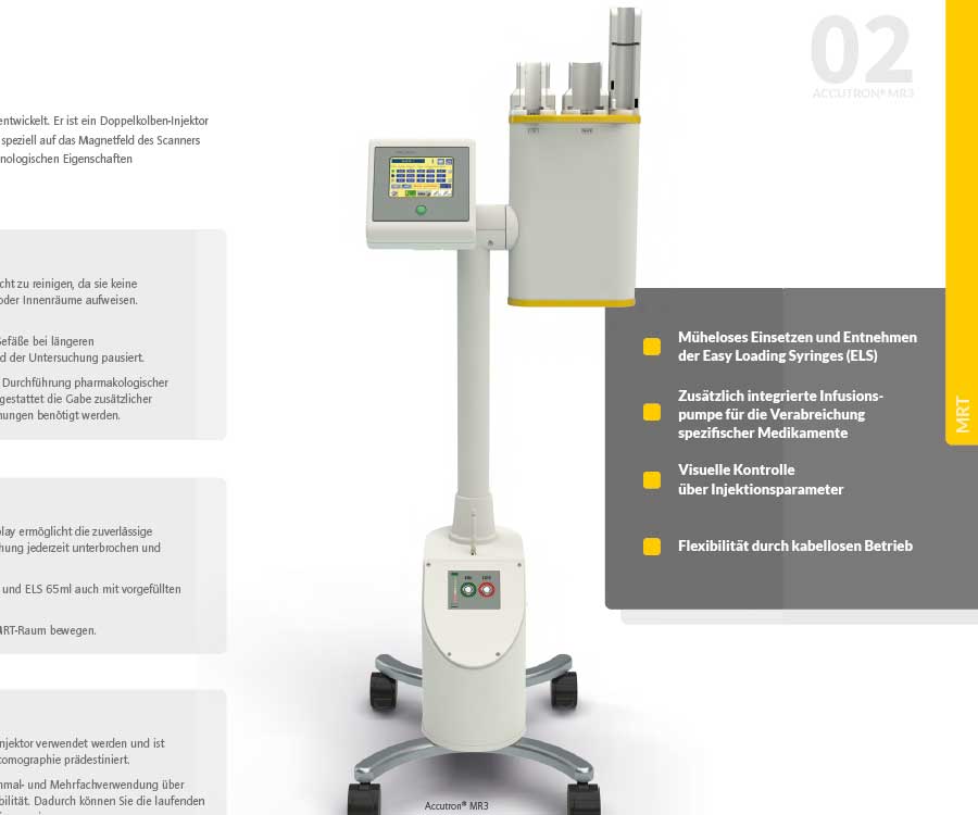 - Expanding your clinical use: With the Accutron® MR3 allows pharmacological cardiac MRI stress tests.